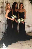 Mermaid Style Sweetheart Sweep Train Black Long Bridesmaid Dresses with Lace OK449