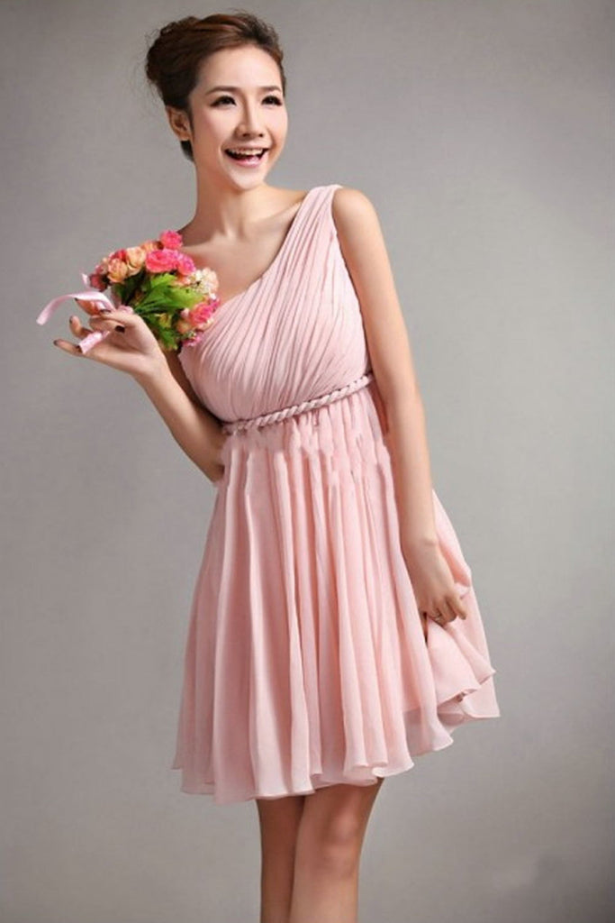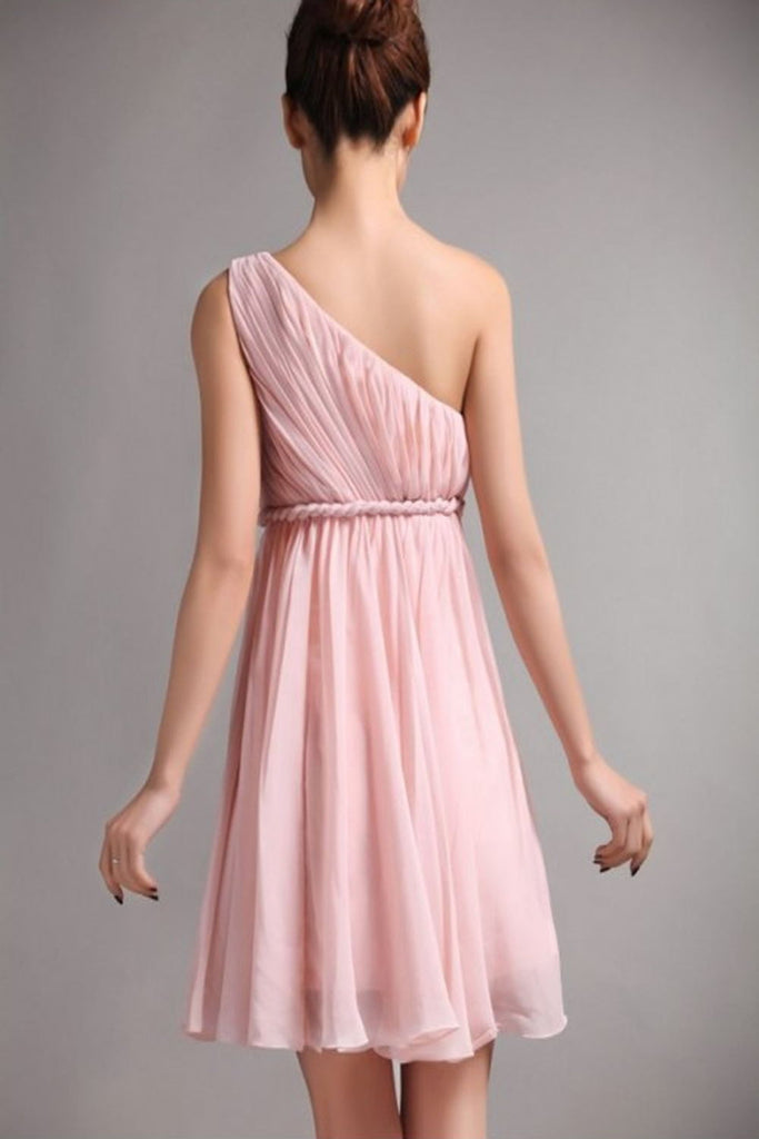 Simple One Shoulder Short Chiffon Cheap Bridesmaid Homecoming Dress K49
