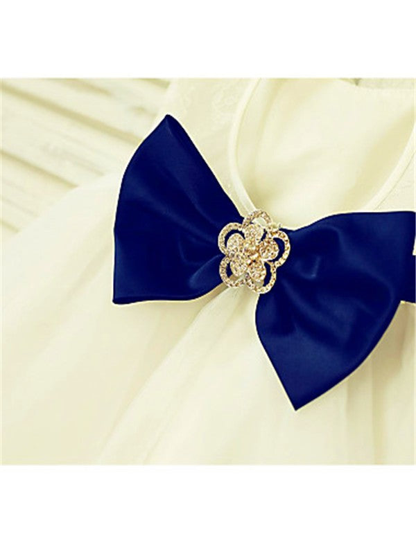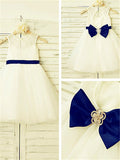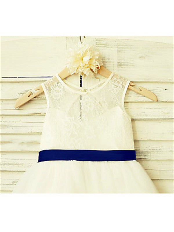 Ivory A-line Scoop Sleeveless Bowknot Floor-Length Tulle Flower Girl Dress With Lace OK710