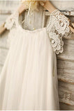 Ivory A-line Scoop Sleeveless Chiffon Floor-Length Flower Girl Dress OK716