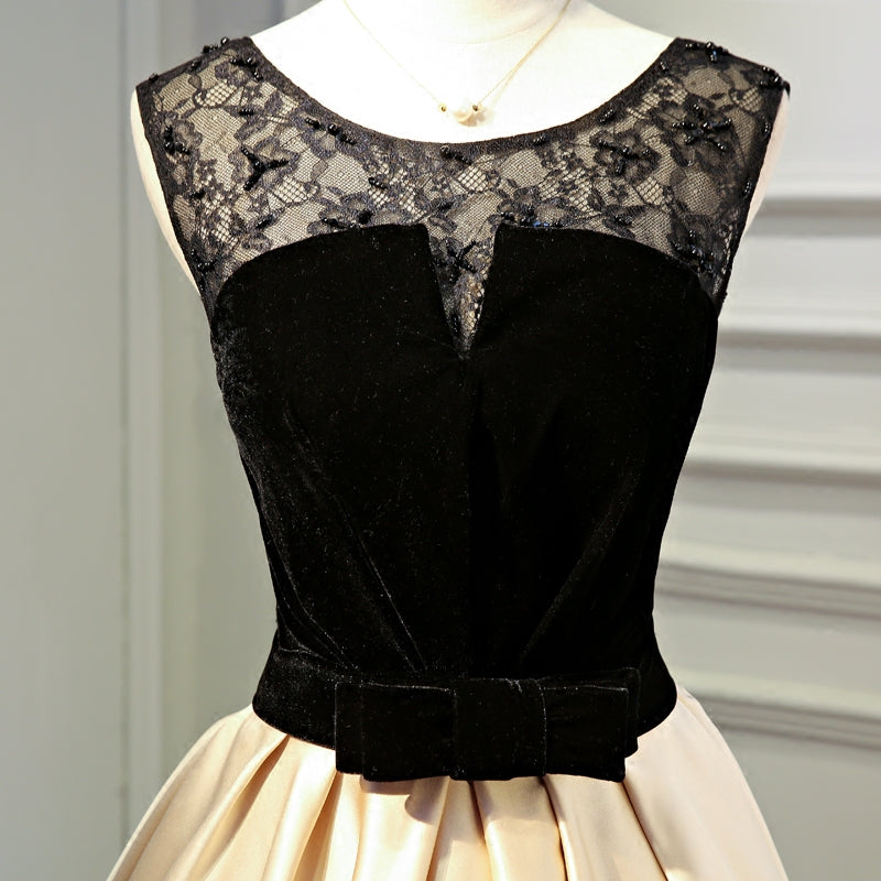 A Line Round Neck Satin Short Homecoming Dress With Black Lace OKN48