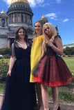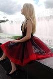 Cap Sleeves Black Lace Appliques Red Homecoming Dresses OKO31