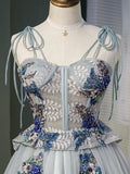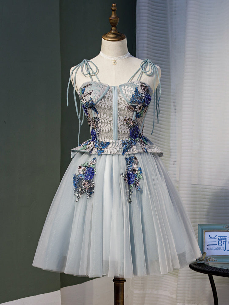Cheap Gray A Line Tulle Homecoming Dress With Appliques OKN55