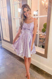 Lilac A Line Sequined Homecoming Dresses Cute Graduation Party Dresses OK1437