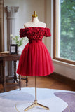 Elevate your style with our Off the Shoulder Flower Bodice Tulle Short Homecoming Dress. The flower bodice adds a touch of elegance, while the tulle fabric creates a flattering silhouette. Perfect for any formal event, this dress will make you feel confident and beautiful.