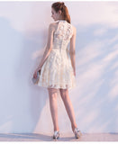 Cute A-Line Lace Short High Neck Homecoming Dresses,Sweet 16 Dress OKC60
