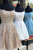 Lace Spaghetti Straps Sleeveless Homecoming Dress School Event Dress Graduation Dress OKY19