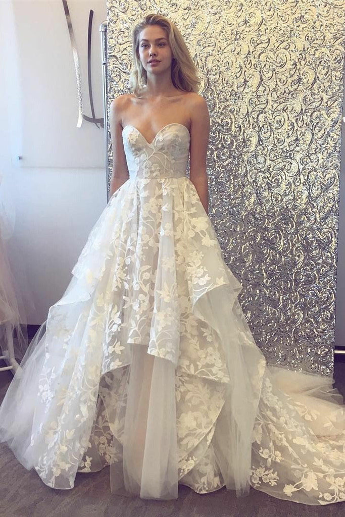 Fashion A-Line Sleeveless Sweetheart Tulle Lace Wedding Dresses OKF91