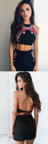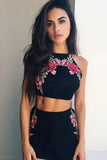 Tight Two Piece Black Satin Homecoming Dresses with Flower Appliques OKB76