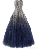 Beauty Long Ball Gown Strapless Sequin Shiny Modest Prom Dresses K113