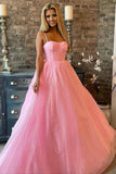 Shiny A Line Pink Tulle Spaghetti Straps Sparkly Long Prom Dress OK1969