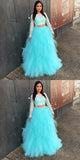 Full Sleeve Evening Dress, Two Piece Tulle Lace Top Prom Dresses, Elegant Formal Dress OKE90