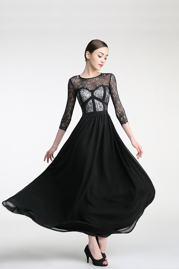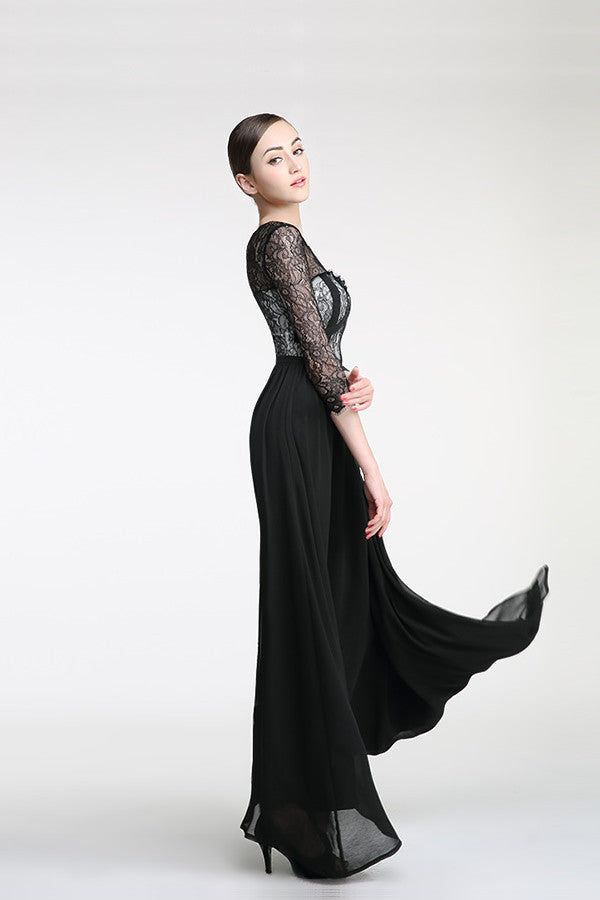 Long Sleeves Black Cap Sleeves Lace Prom Party Dress ED0830