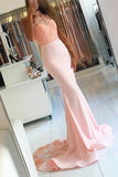 Sexy Backless Mermaid Satin Prom Dresses with Train,Long Open Back Evening Dress OK120