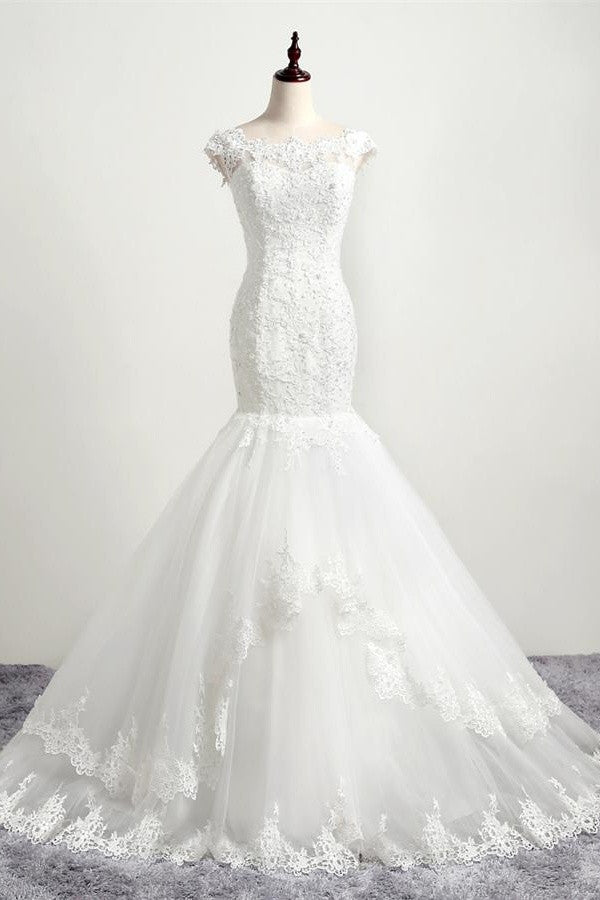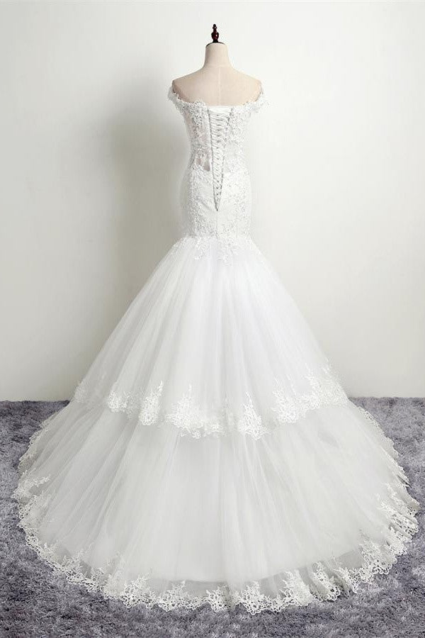 Mermaid Boat Neckline Open Back Lace Up White Long Wedding Dress W25