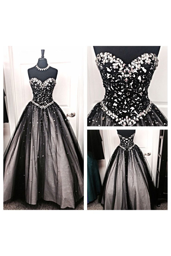 Black White Tulle Long Ball Gown Prom Dresses,Sweetheart Beaded Bodice Quinceanera Dresses OK810