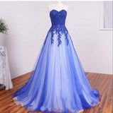 Long Sweetheart Lace Beading Elegant Modest Royal Blue Prom Dress,Ball Gown Prom Dress OK246