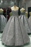 Sweetheart Gray Sleeveless Long Ball Gowns Shiny Sequin Prom Dresses OK841