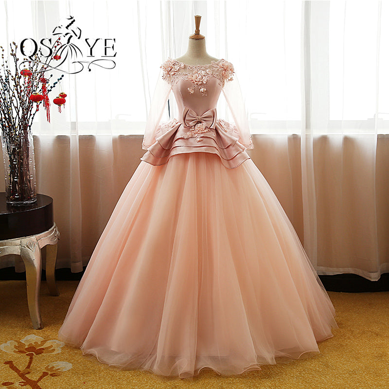 Vintage Flower Long Sleeves Puffy Tulle Long Prom Dresses,Quinceanera Dresses OK608