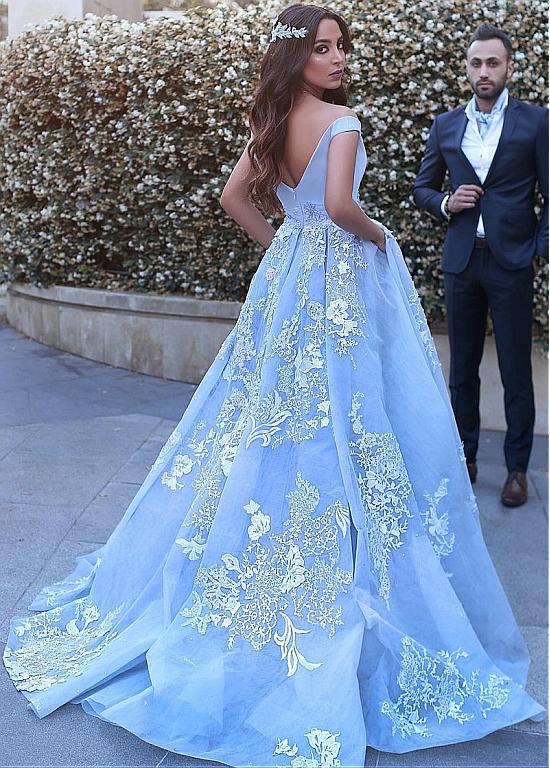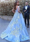 Wonderful Ball Gown Appliques Prom Dresses,Formal Blue Evening Dress,Quinceanera Dresses OK357