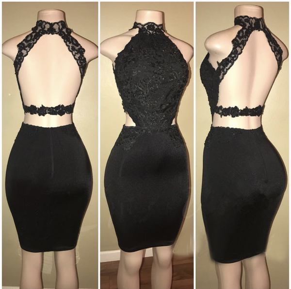 Black Lace Sheath Short Prom Dress, Tight Sexy Homecoming Dresses OKD79