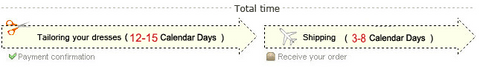 Standard receiving time (Time you pay successfully) = Tailoring time (around 12-15 Calendar days) + Shipping time (around 3-8 Calendar days).