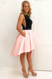Black and Pink Short A Line Homecoming Dress,Graduation Dress OKB85