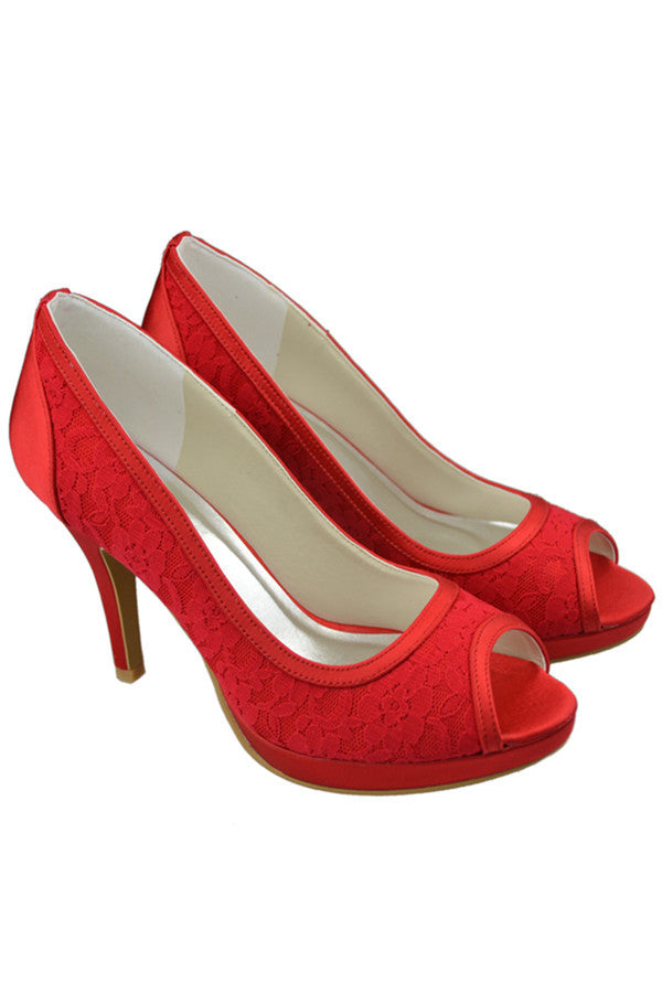 Red Lace High Heel Peep Toe High Quality Wedding Shoes S109