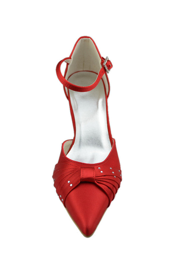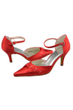 Red Pointed Toe Handmade Beaded Comfy Women Shoes S89