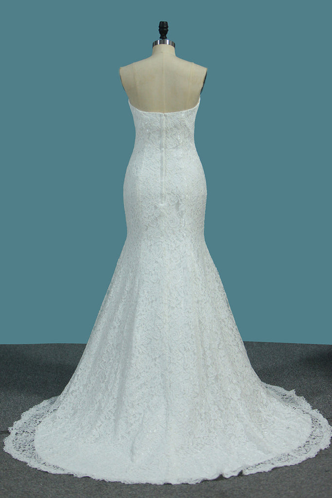 Charming Lace Mermaid Sweetheart Sweep Train Wedding Dress OKE72