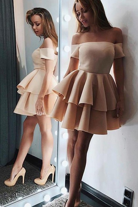 A-line Tired Off the Shoulder Short Homecoming Dress Grad Popular Short Prom Dress OKY17
