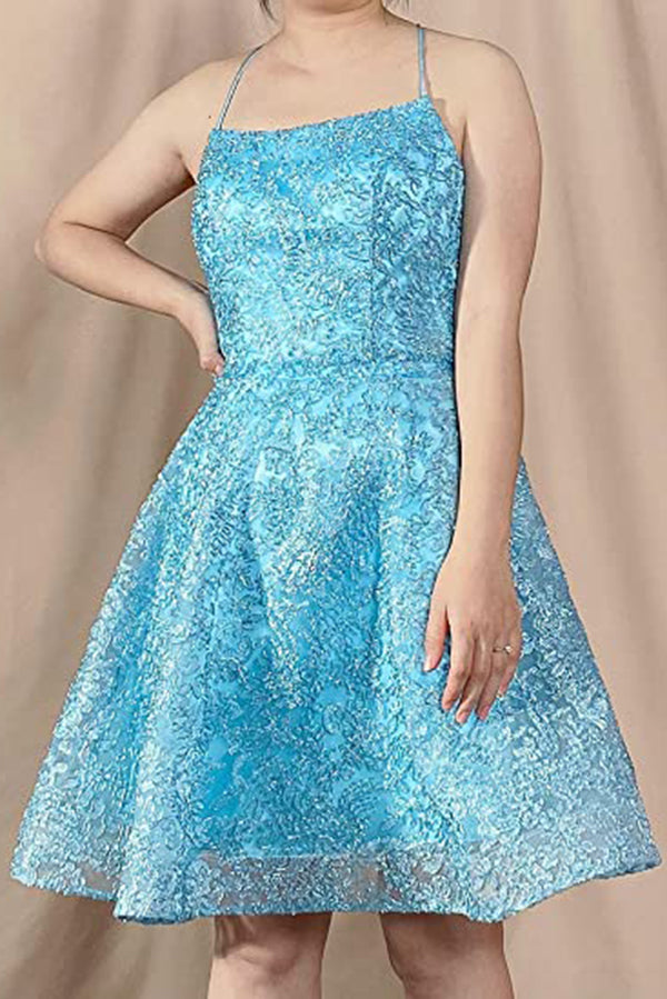 Short Homecoming Dress for Juniors A-line Graduation Spaghetti Straps Party Gown OKY48