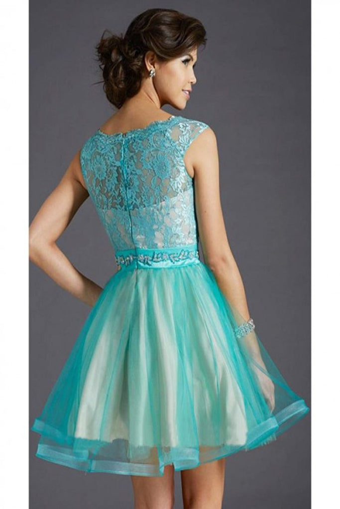 Teal Lace Cap Sleeves Short Beaded Homecoming Dress K66