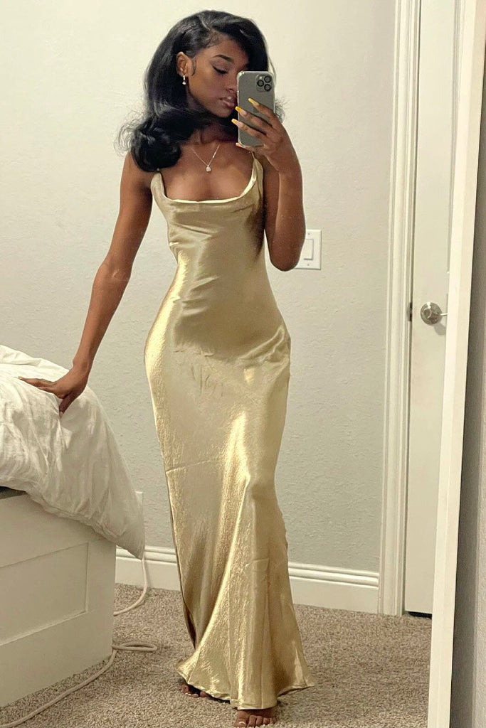 Gold Mermaid Sexy Prom Dress Long Evening Dress Formal Party Gown OK1407