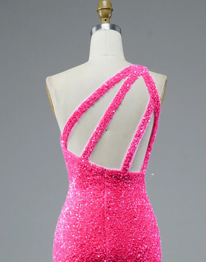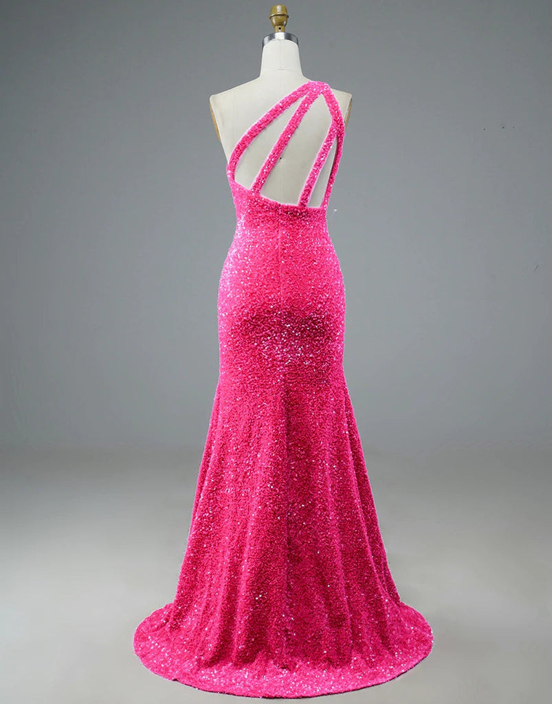 Mermaid Glitter One Shoulder Open Back Prom Dress With Slit Sequins Evening Dress OK1362