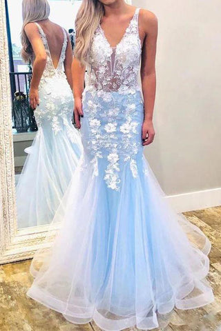 Compared to A-line prom dress the mermaid style is more flirty and sultry. It gives the girl of a feeling of being a lady and a beautiful one. A mermaid style gown generally has a corset bodice with a lace up back and an invisible zip and the skirt is trumpet style all to give a perfect look to a woman who is wearing it. It comes in a variety of necklines strapless, scoop and V-neck. Most of them are sleeveless and sometimes to add to its beauty there is lace or embroidery pattern made on it.