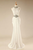 Charming Elegant White Halter Beaded Chiffon Long Prom Dress OK26