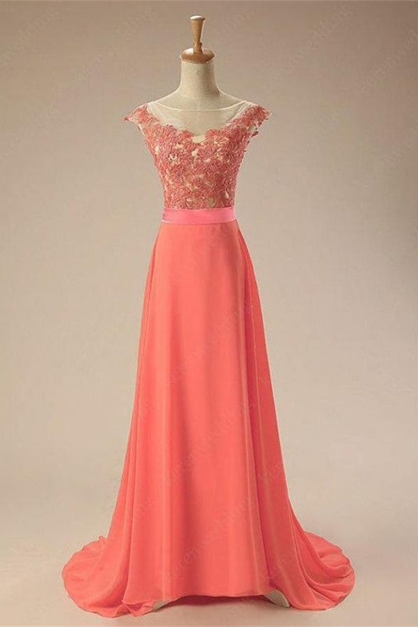Elegant Watermelon Charming Long Chiffon Lace Prom Dress
