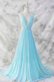 Ice Blue Simple Deep V-neck Beaded Open Back Prom Dress OK22