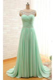 Mint Beaded Charming Backless Cheap Long Chiffon Prom Dress OK24