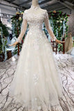 Prom Dress Tulle High Neck Long Sleeves Handmade Flowers OKK12