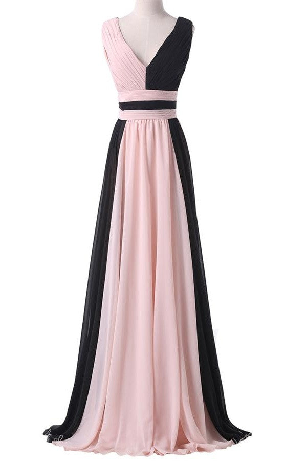 Simple Cheap Pink And Black Long Chiffon Prom Dress OK25