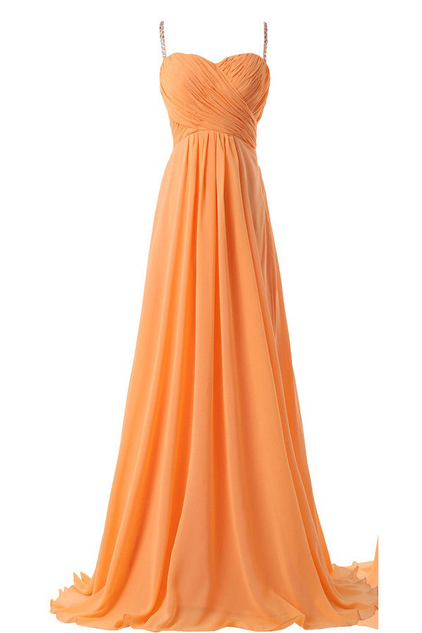 Spaghetti Straps Simple Modest Orange Backless Cheap Prom Dress For Teens OK32