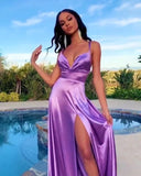 Pretty Purple A Linbe Long Split Silk Satin Prom Dress Evening Dress OK1559
