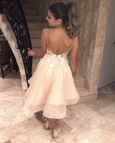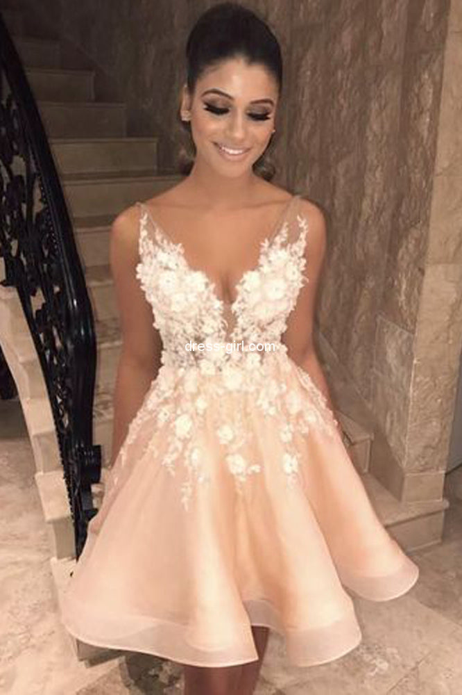 Beautiful A-line V Neck Lace Appliques Homecoming Dress OKY90